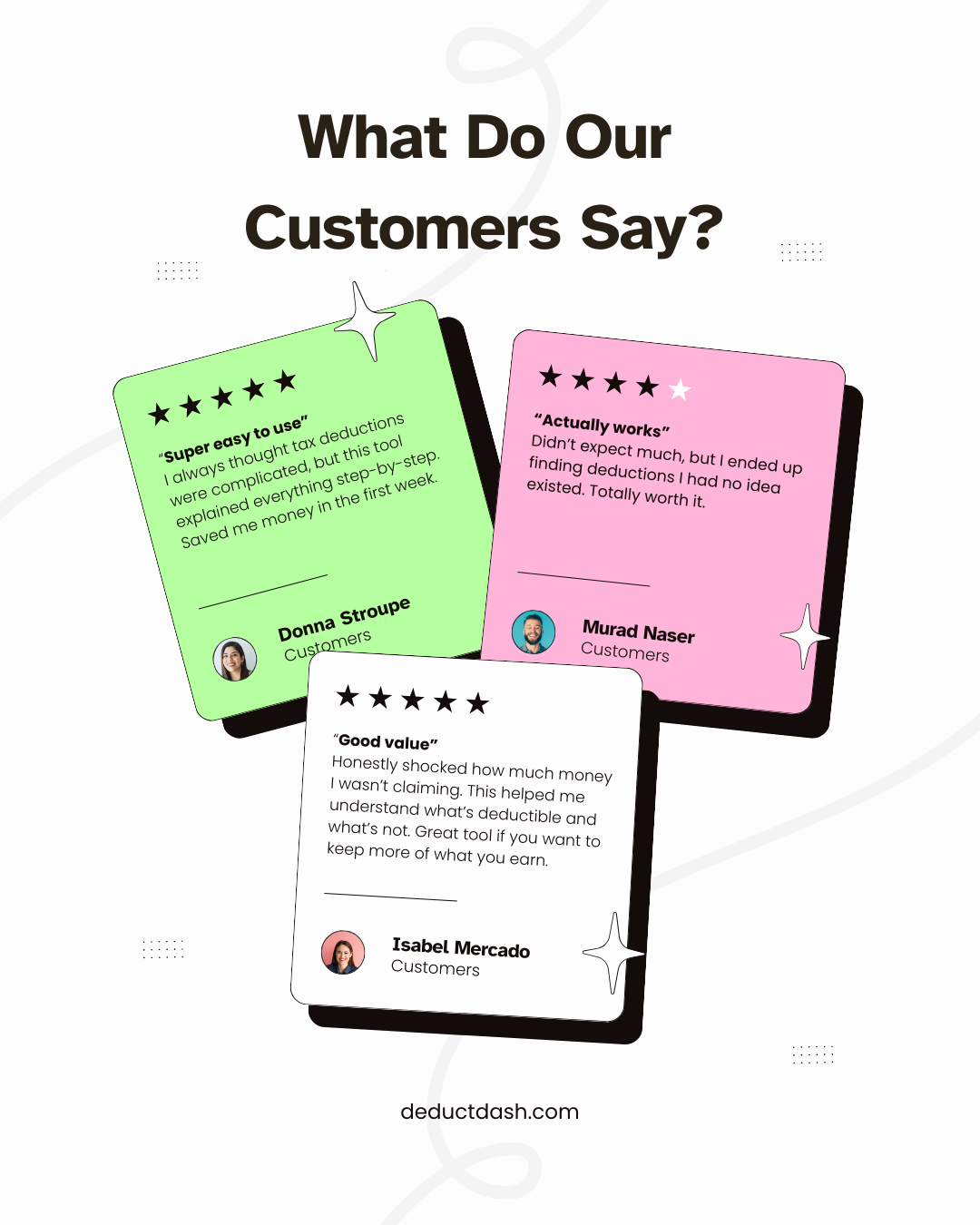 • 12-page PDF guide – biggest IRS deductions 95 % of side-hustlers miss (mileage, home-office, software, fees).